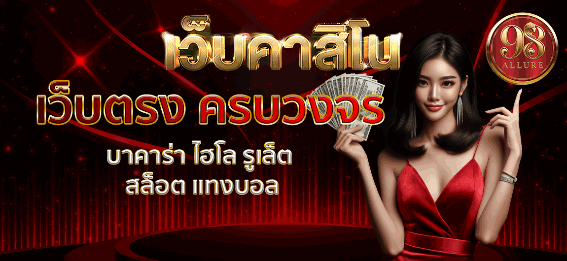 เว็บพนัน Allure98 - เว็บคาสิโนออนไลน์ที่ให้บริการเกมพนันครบวงจร ทั้งสล็อต บาคาร่า แทงบอล มวย หวย และเกมไพ่ต่างๆ มาพร้อมระบบฝาก-ถอนอัตโนมัติที่รวดเร็ว รองรับการทำธุรกรรมผ่านธนาคารและวอลเล็ทชั้นนำ มีโปรโมชั่นสำหรับสมาชิกใหม่และเก่า เช่น โบนัสต้อนรับ เครดิตฟรี และคืนยอดเสีย ให้บริการตลอด 24 ชั่วโมงผ่านเว็บไซต์ที่รองรับทั้งคอมพิวเตอร์และมือถือ พร้อมทีมงานคอยให้คำปรึกษาตลอดเวลา เน้นความปลอดภัยด้วยระบบรักษาความปลอดภัยมาตรฐานสากล มีใบอนุญาตการพนันถูกกฎหมาย เป็นทางเลือกสำหรับผู้ที่ชื่นชอบการเดิมพันออนไลน์